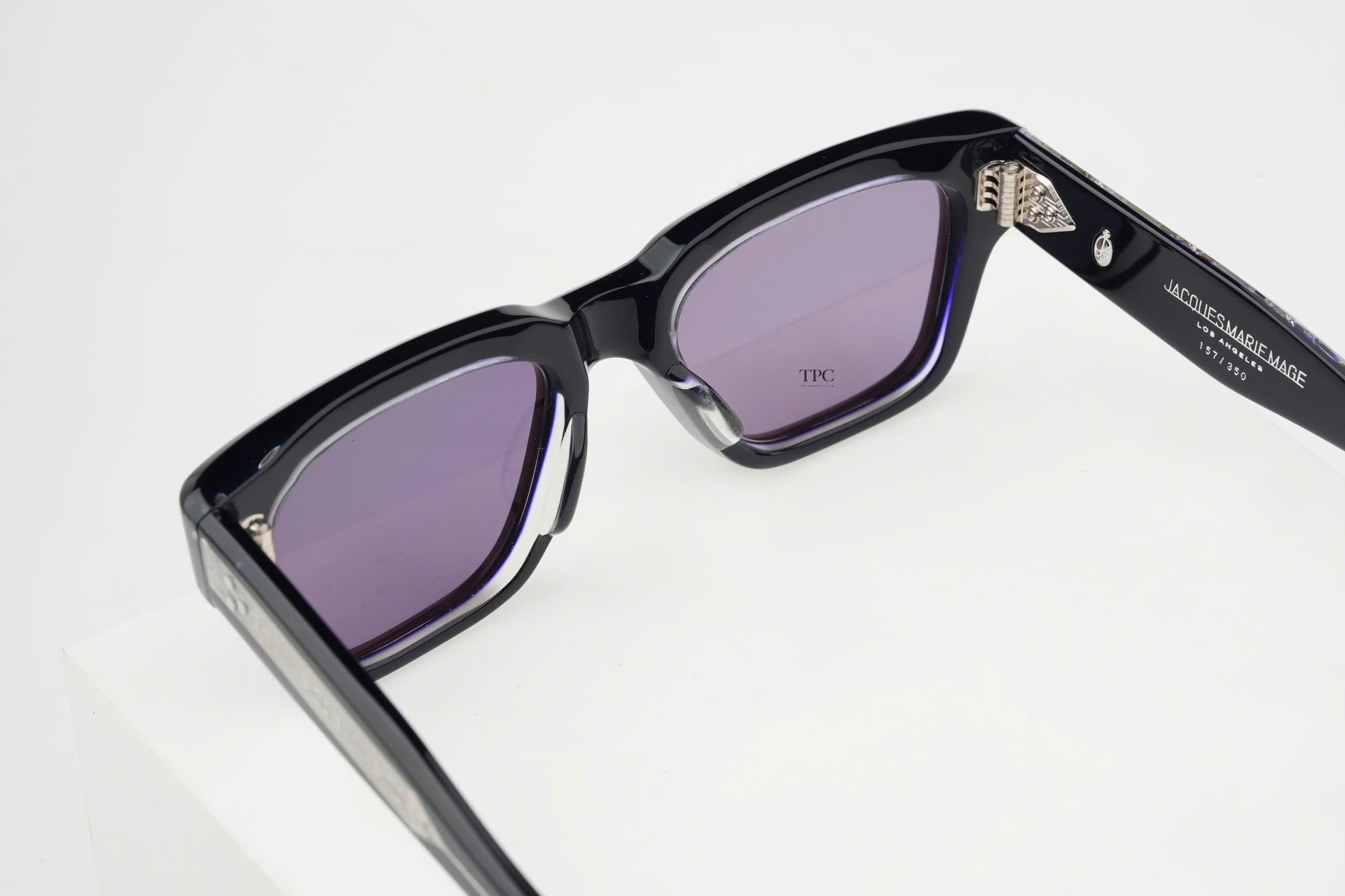 Chất liệu: Gọng cellulose acetate màu đen dày 10mm đã qua xử lý, với càng kính acetate ép hai lớp tùy chỉnh Lens : Deep brown gradient cr39 lens