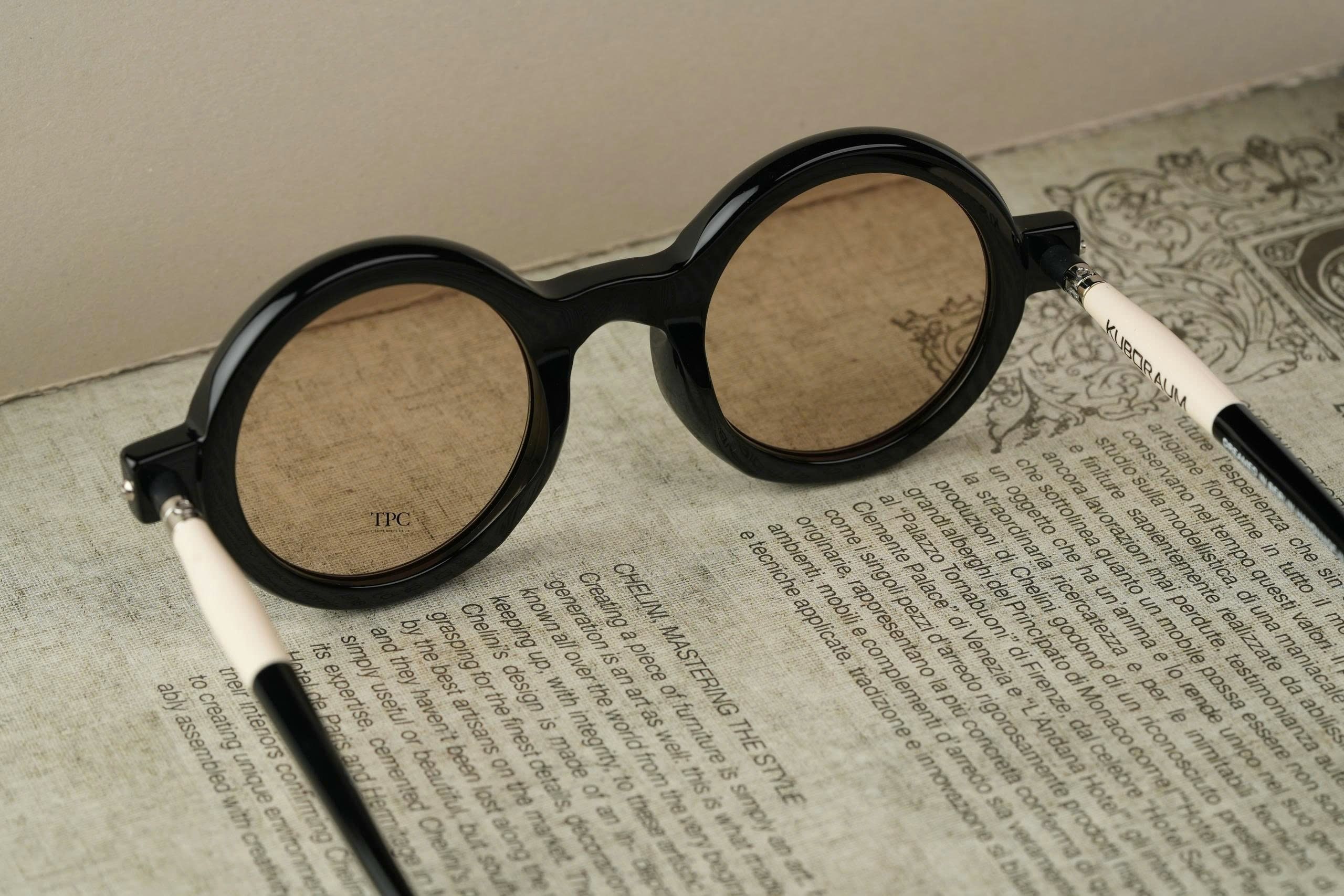 MATERIAL: ACETATE COLOR: BLACK SHINE TEMPLES COLOR: IVORY + BLACK SHINE LENS: 24H LIGHT BROWN BRIDGE: 25 mm LENS WIDTH: 47 mm TEMPLE LENGTH: 145 mm