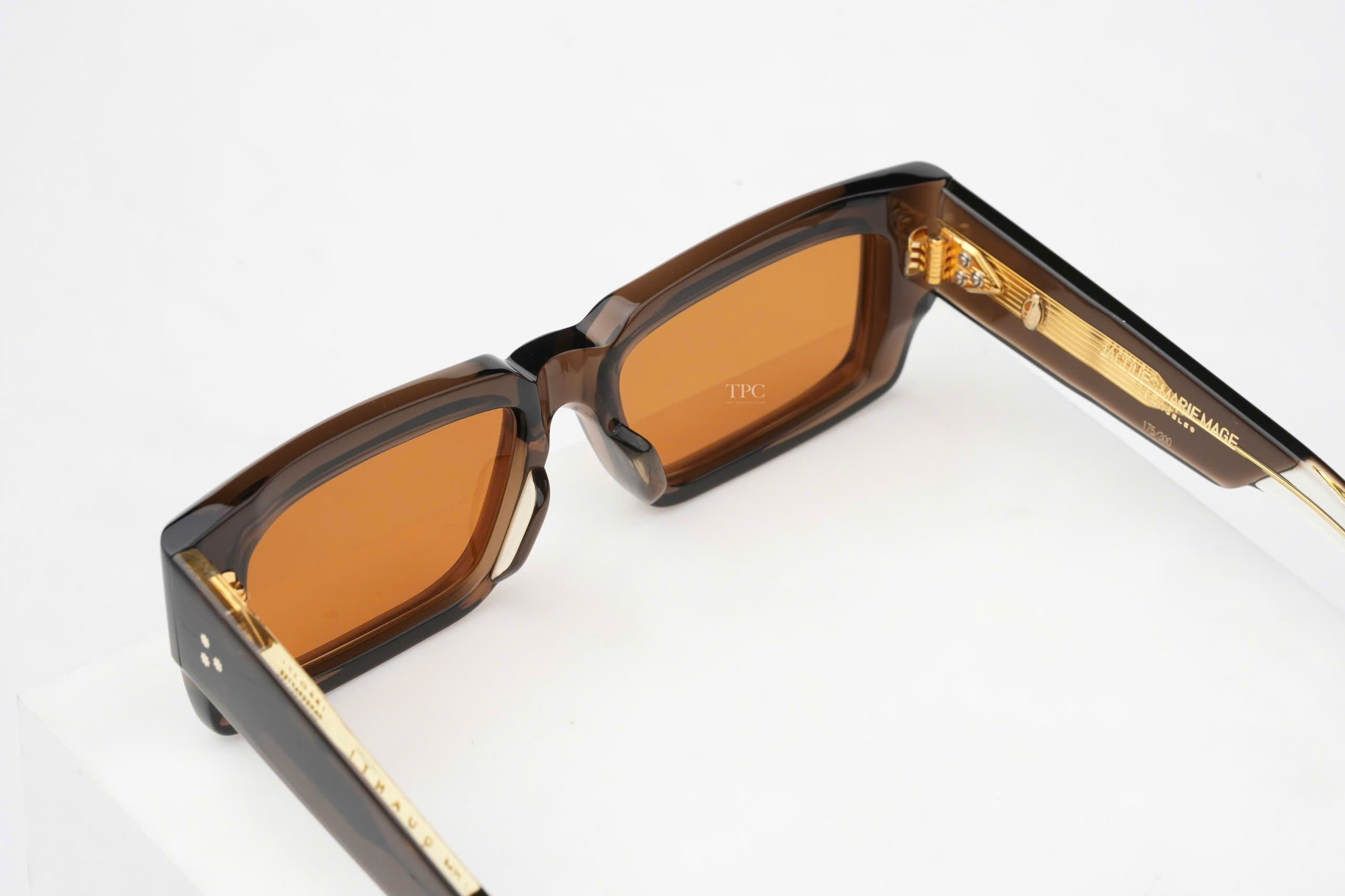 Chất liệu: Acetate đã xử lý màu nâu dày 10mm, với càng kính acetate ép hai lớp tùy chỉnh, tích hợp chi tiết kim loại quý
