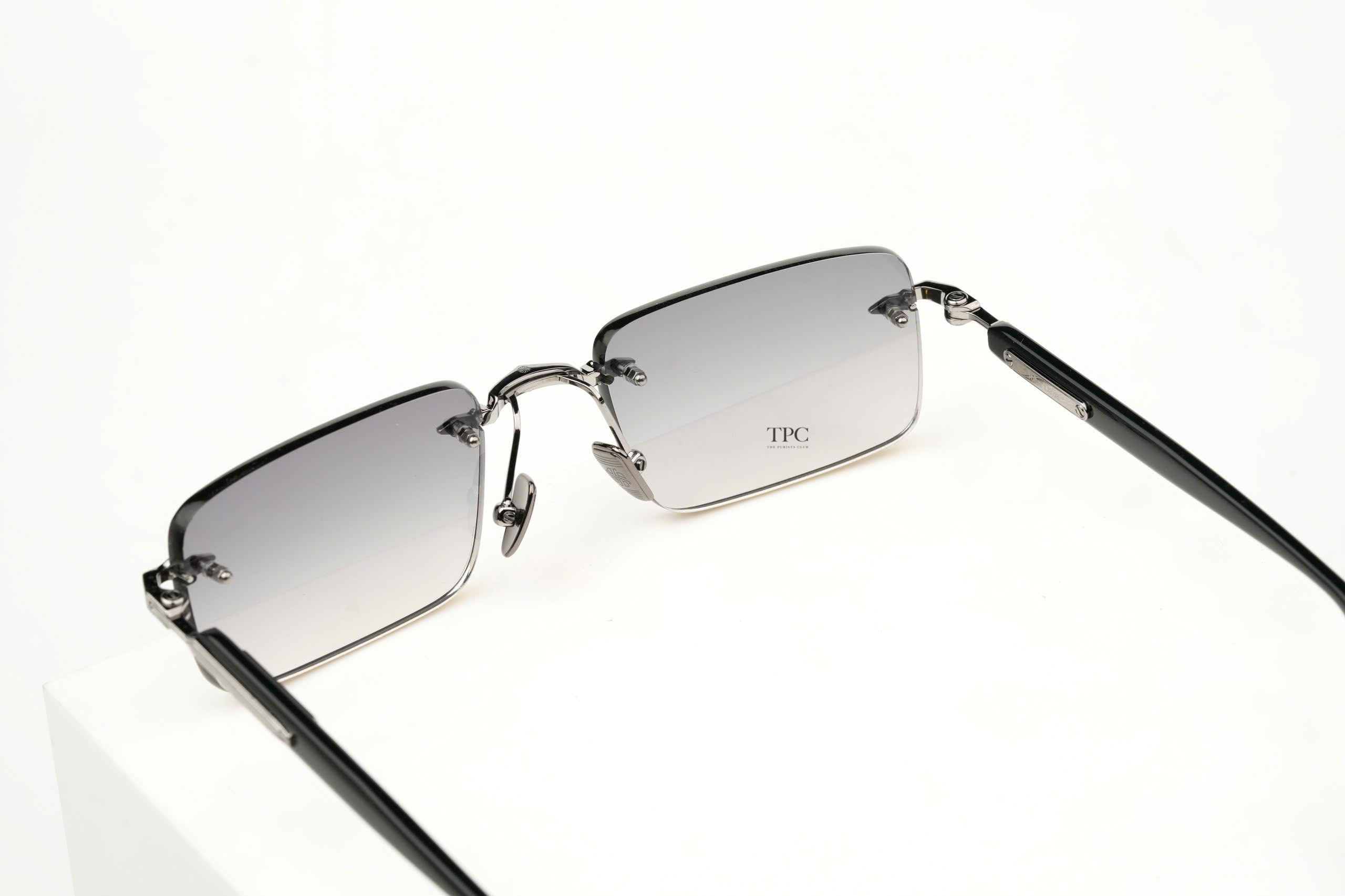 The temple structure extends into a titanium-colored metal arm, offering a refined contrast, and ends with acetate temple tips in a shiny black tone for comfort and balance.