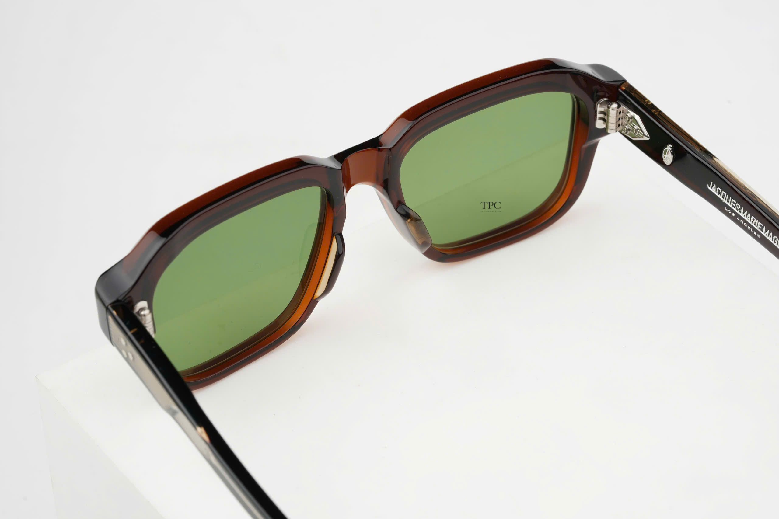 Chất liệu: Gọng cellulose acetate đã qua xử lý dày 10 mm màu nâu, với càng kính acetate Lens : CR 39 Green lens